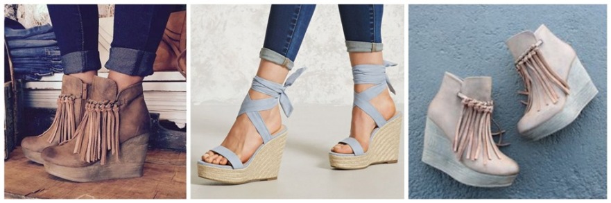 Wedges are heels for girls who cannot walk in those six-inch stilettos because they are not comfortable. They are elevated, but unlike other heels, the weight is equally distributed throughout, balancing it all out and making it comfortable to walk.